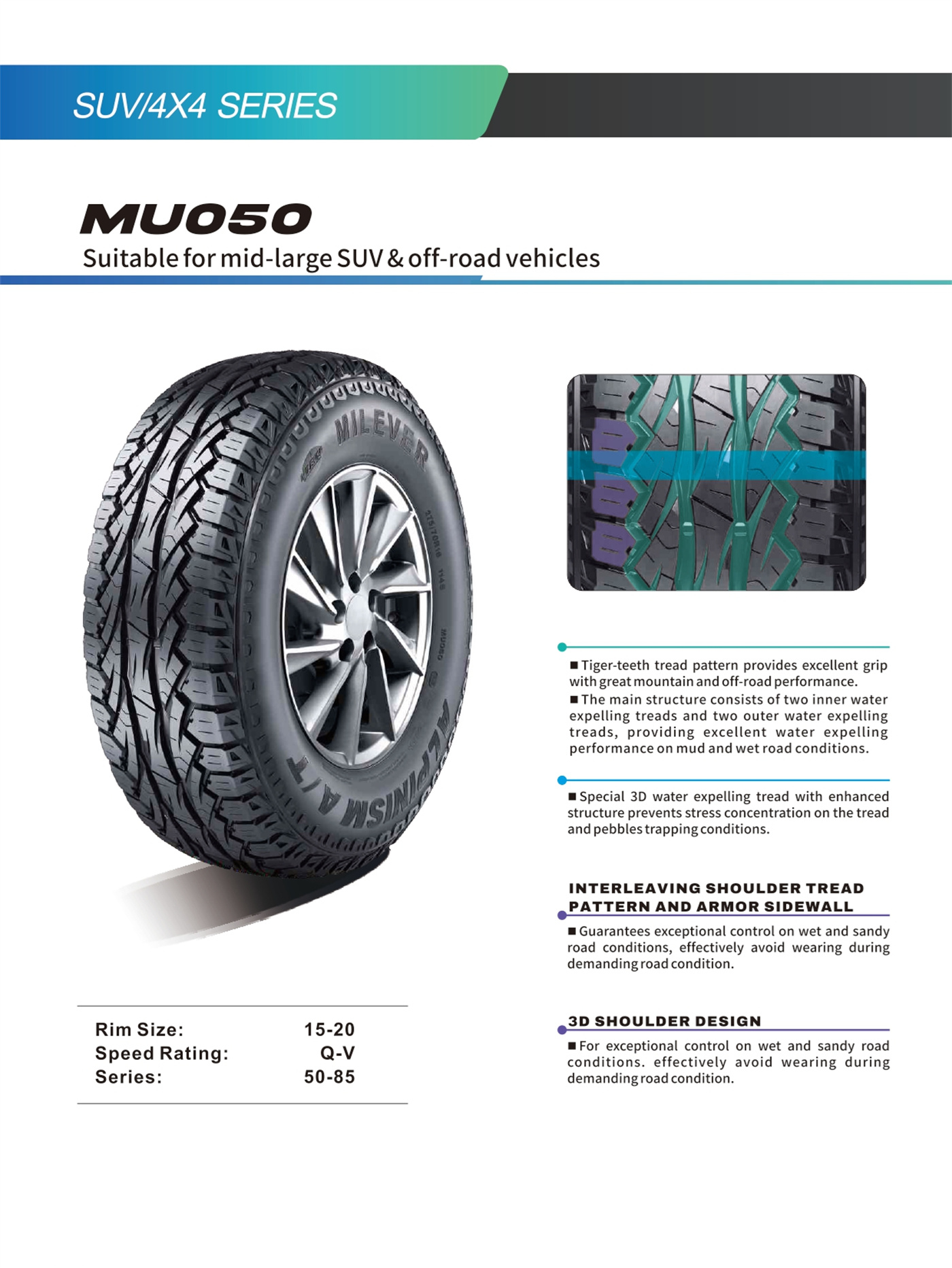 | 31×10.50R15LT | 109 | Q | 81/2J | 268 | 775 | 350 | 1030 |