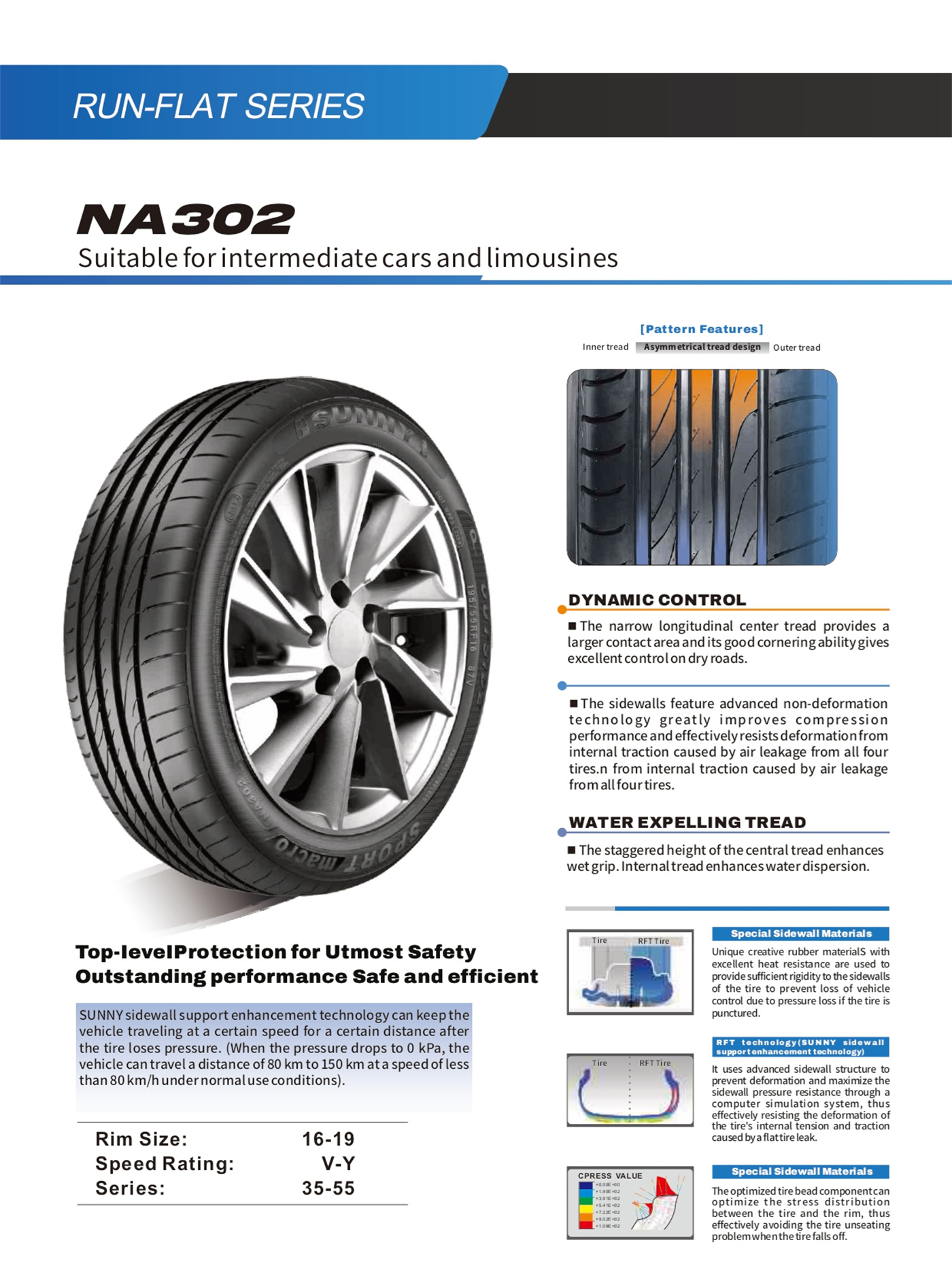 | 225/55RF16 | 95 | V | 7J | 233 | 654 | 250 | 690 |