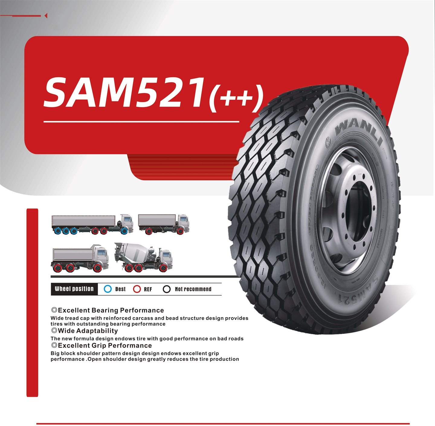 Big block shoulder pattern design design endows excellent grip performance. Open shoulder design greatly reduces the tire production.