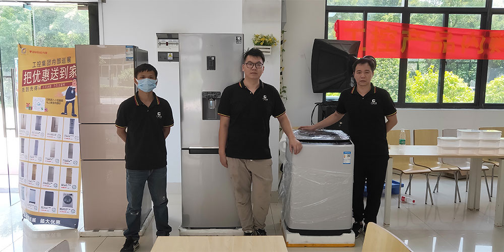 7月8日、15日,萬力輪胎、萬寶冰箱來到了廣東南方堿業(yè)股份有限公司和廣州雙一乳膠制品有限公司員工飯?zhí)脙冗M行內購產品促銷。